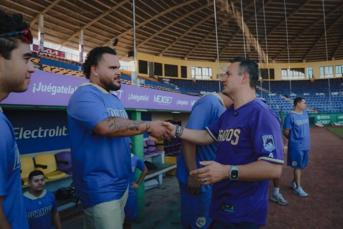 H. Ciudad de Chihuahua, Chih., El alcalde Marco Bonilla, acudió a las instalaciones del Estadio Monumental Chihuahua para desearle éxito al equipo de la liga de Dorados de Béisbol, quienes disputarán la final contra los Indios de Ciudad Juárez este viernes. El edil reconoció el esfuerzo de todos y señaló que en esta contienda, Chihuahua los espera con la victoria.
