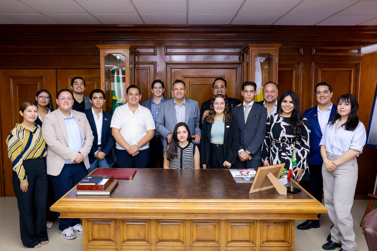 H. Ciudad de Chihuahua, Chih. Para agradecer su participación dentro del Cabildo Joven 2024, el alcalde Marco Bonilla recibió en el despacho de Presidencia Municipal a los 16 jóvenes que participaron en este programa durante todo un año, quienes compartieron sus experiencias y aprendizajes de la vida dentro de la función pública.