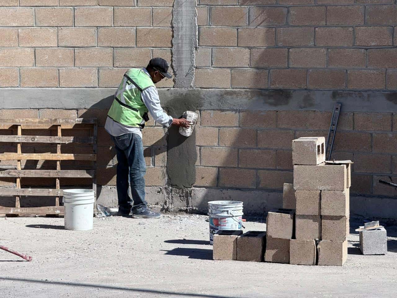 Gracias al Presupuesto Participativo, con una inversión superior a los 5 millones de pesos, se trabaja en la rehabilitación de muros, trabes y columnas, instalación de pasto sintético, malla ciclónica perimetral, trabajos de herrería en porterías, y barandal de las gradas, así como la conexión eléctrica y la instalación de 12 luminarias tipo reflector.