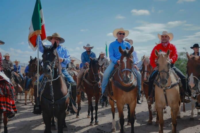 Parral, Chih., a 19 de julio de 2025.- El alcalde de Chihuahua, Marco Bonilla, se unió a la 30 Cabalgata Villista en Hidalgo del Parral, junto al presidente municipal de este municipio, Salvador Calderón, y un contingente formado por cabalgantes de todo el estado, como parte de las Jornadas Villistas.
