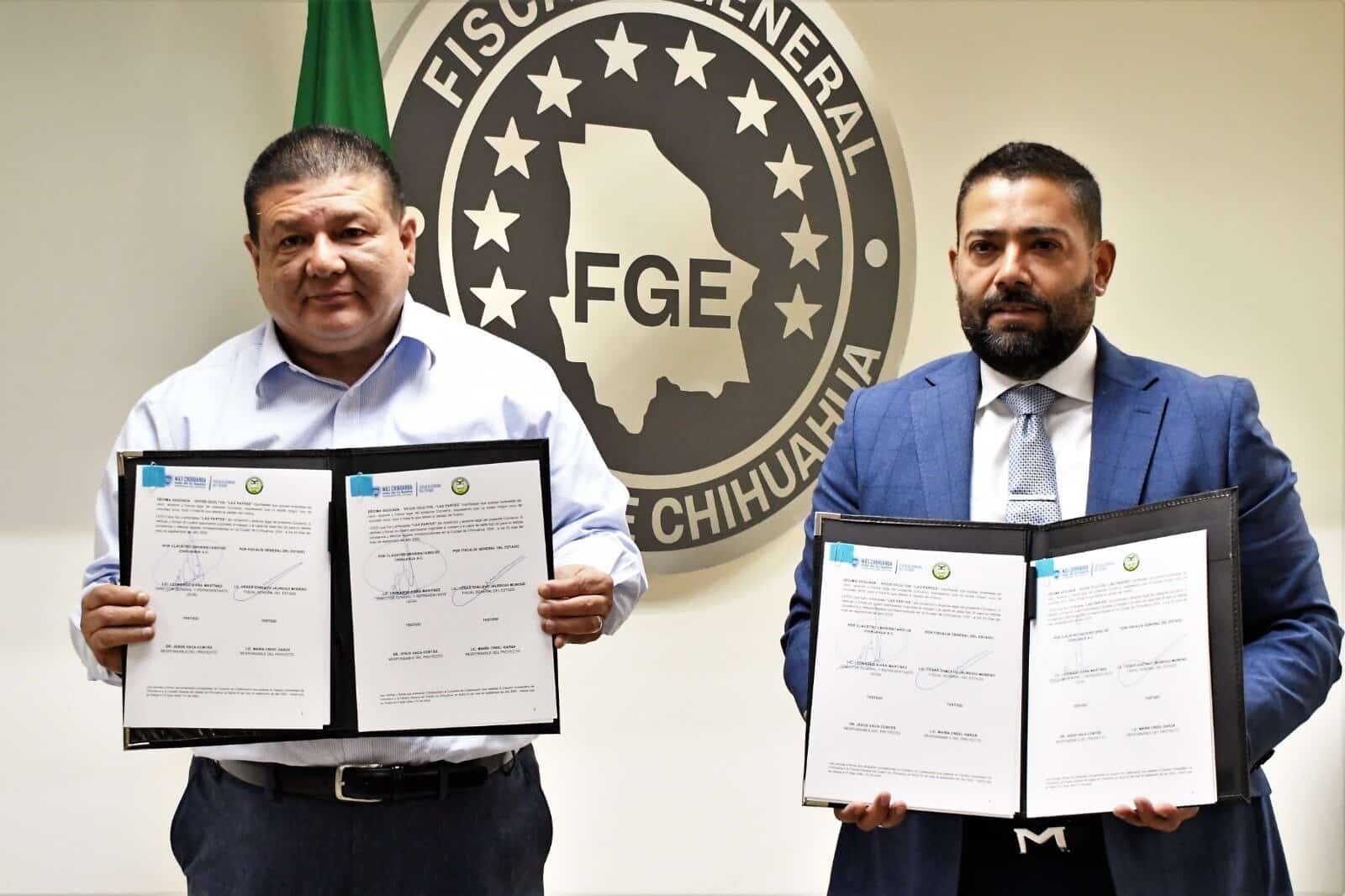 La Fiscalía General del Estado y el Claustro Universitario de Chihuahua A.C., firmaron dos convenios de colaboración, uno de los cuales, es para realizar un estudio que permita identificar causas y motivaciones del comportamiento delictivo en personas privadas de su libertad (PPLs) en el municipio de Chihuahua.