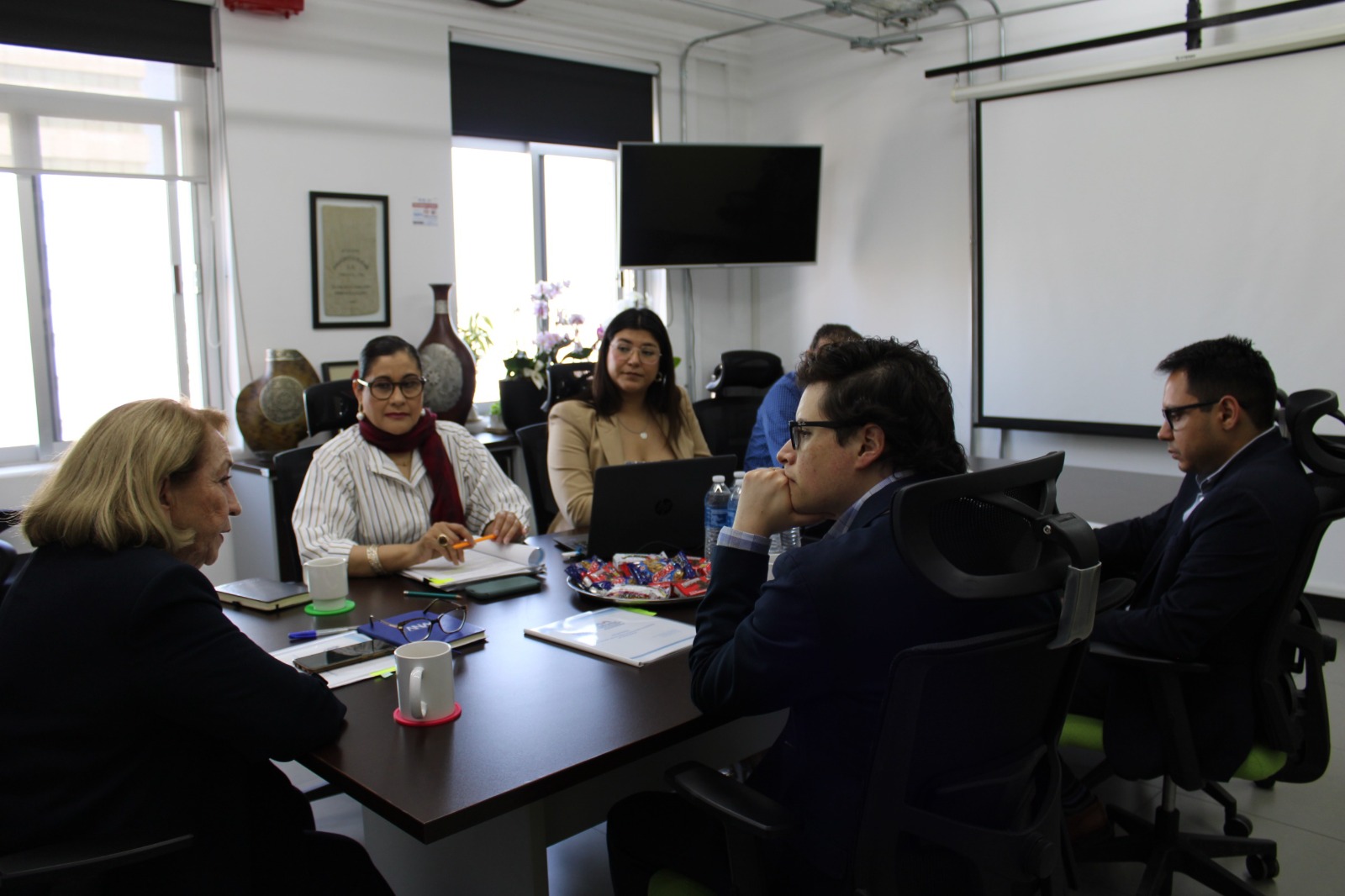 La Tesorera Municipal, Amanda Córdova, en compañía de las subdirectoras de Ingreses y Egresos, se reunieron con el equipo de Fianzas Públicas de la calificadora HR Ratings, para cumplir con la revisión anual de evaluar las finanzas del Municipio.