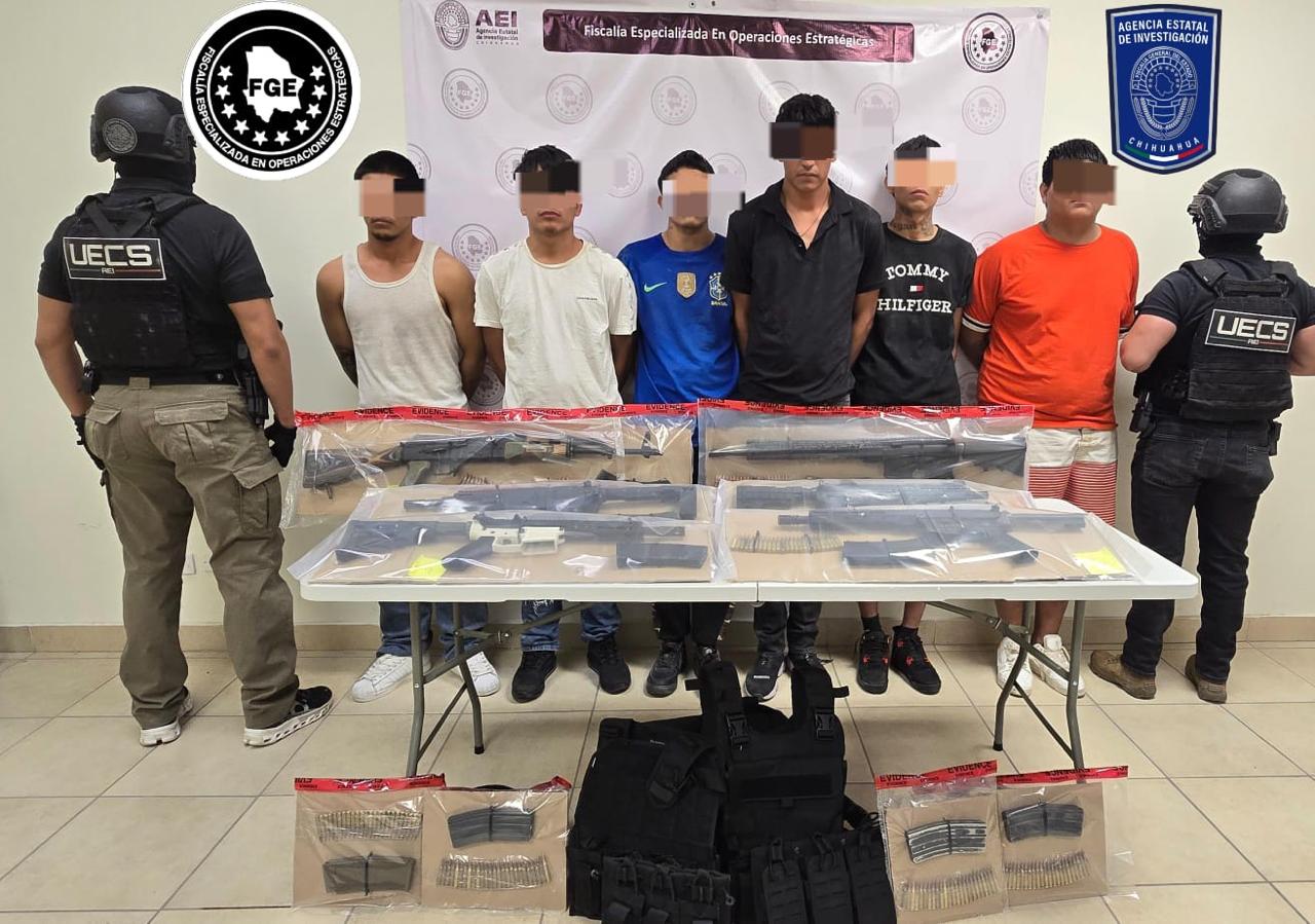 Durante distintas fases del operativo, las autoridades aseguraron al menos siete armas de fuego de uso exclusivo de las Fuerzas Armadas, equipo táctico con características similares al de uso policial, cartuchos útiles, así como tres vehículos probablemente involucrados en la ejecución de los hechos delictivos, evidenciando la capacidad logística y el grado de organización del grupo criminal.