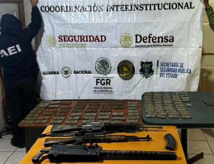 • En el lugar se aseguraron armas, cartuchos y un vehículo blindado