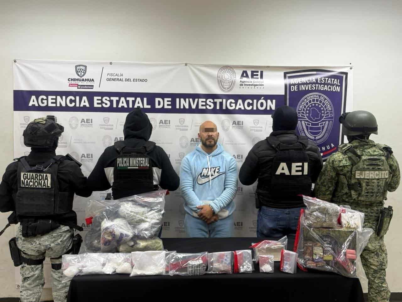 Derivado de una investigación a cargo de la Fiscalía de Distrito Zona Norte, elementos de la Agencia Estatal de Investigación, cumplimentaron una orden de cateo en un domicilio de la colonia Lucio Cabañas, en Ciudad Juárez, en donde detuvieron a quien dijo llamarse Daniel Alberto G. P. y aseguraron diversos narcóticos y cartuchos útiles.