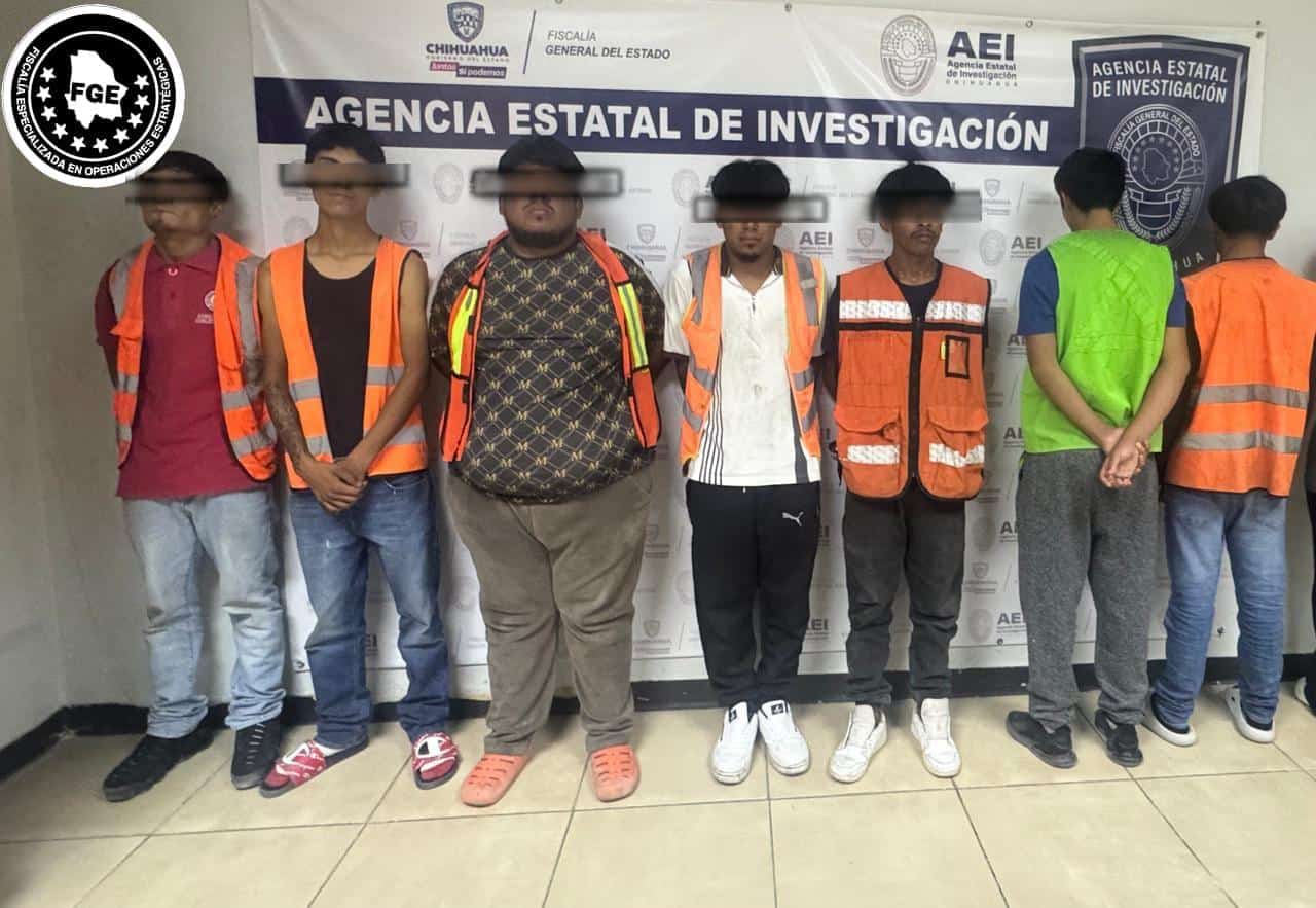 Elementos de la Agencia Estatal de Investigación (AEI), adscritos a la Fiscalía Especializada en Operaciones Estratégicas (FEOE), detuvieron en los términos de la flagrancia a José Abel G. D., Leonel S. E., Carlos Darwin G. L., Alejandro V. C., Germán Iván P. S., junto con dos menores de edad de iniciales B. A. R. T., y E. V. C., por su probable responsabilidad en el delito de secuestro cometido en Ciudad Juárez.