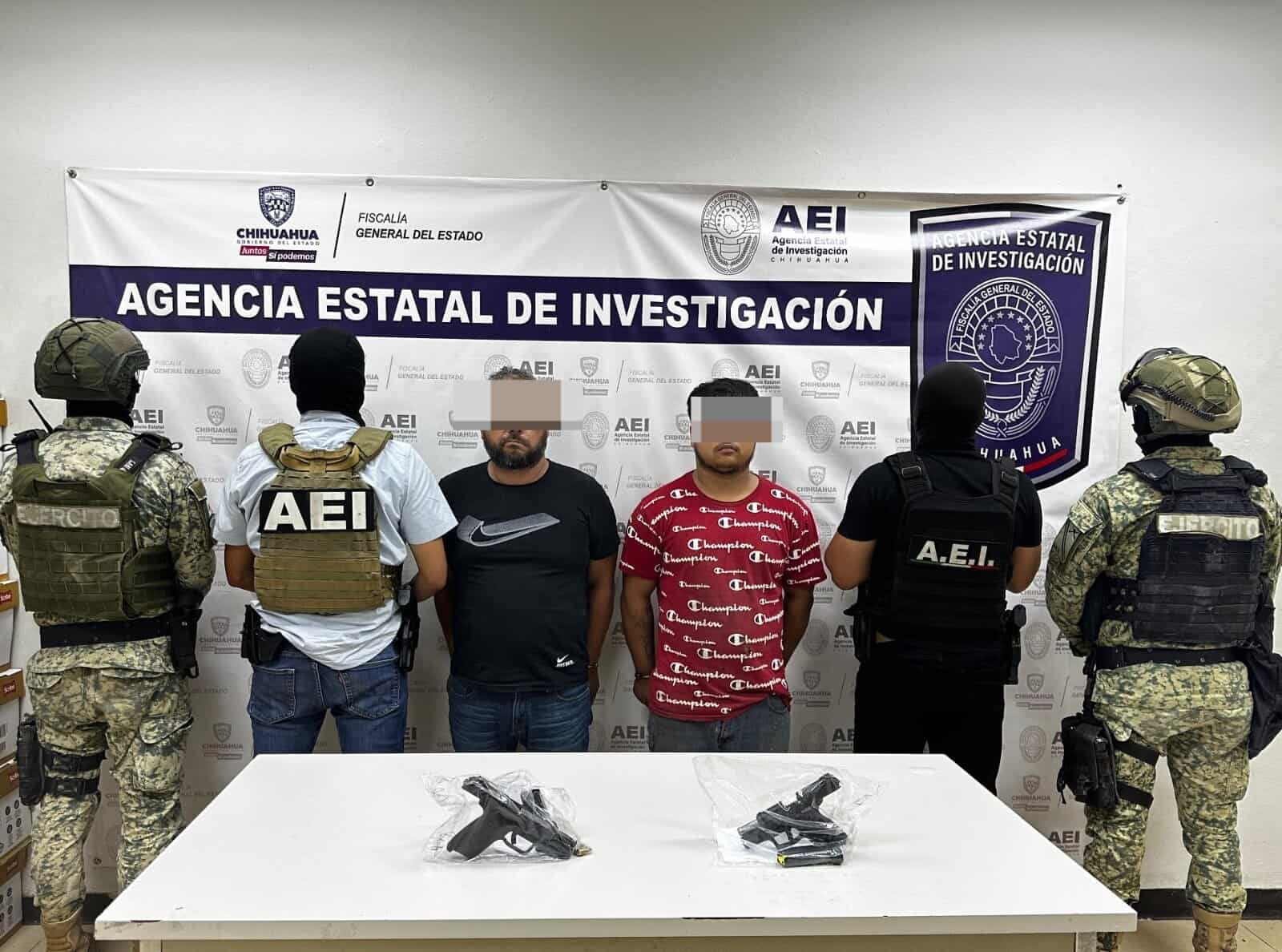 Elementos de la Agencia Estatal de Investigación, adscritos al Centro de Operaciones Estratégicas (COE), de la Fiscalía de Distrito Zona Norte, en coordinación con la Guardia Nacional y el Ejército Mexicano, detuvieron a Héctor Hugo T. G., de 45 años y a Héctor Hugo T. M., por el delito contra la Ley Federal de Armas de Fuego y Explosivos.