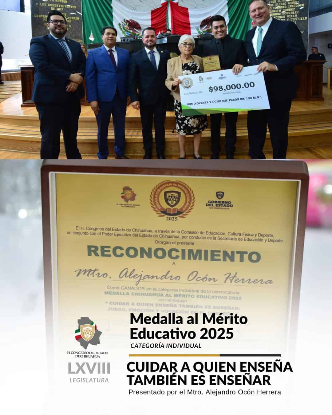 El Congreso del Estado reconoció el trabajo educativo denominado “Cuidar a quien enseña también es enseñar: juego, emoción y vocación en el corazón”, presentado por el Mtro. Alejadnro Ocón Herrera.