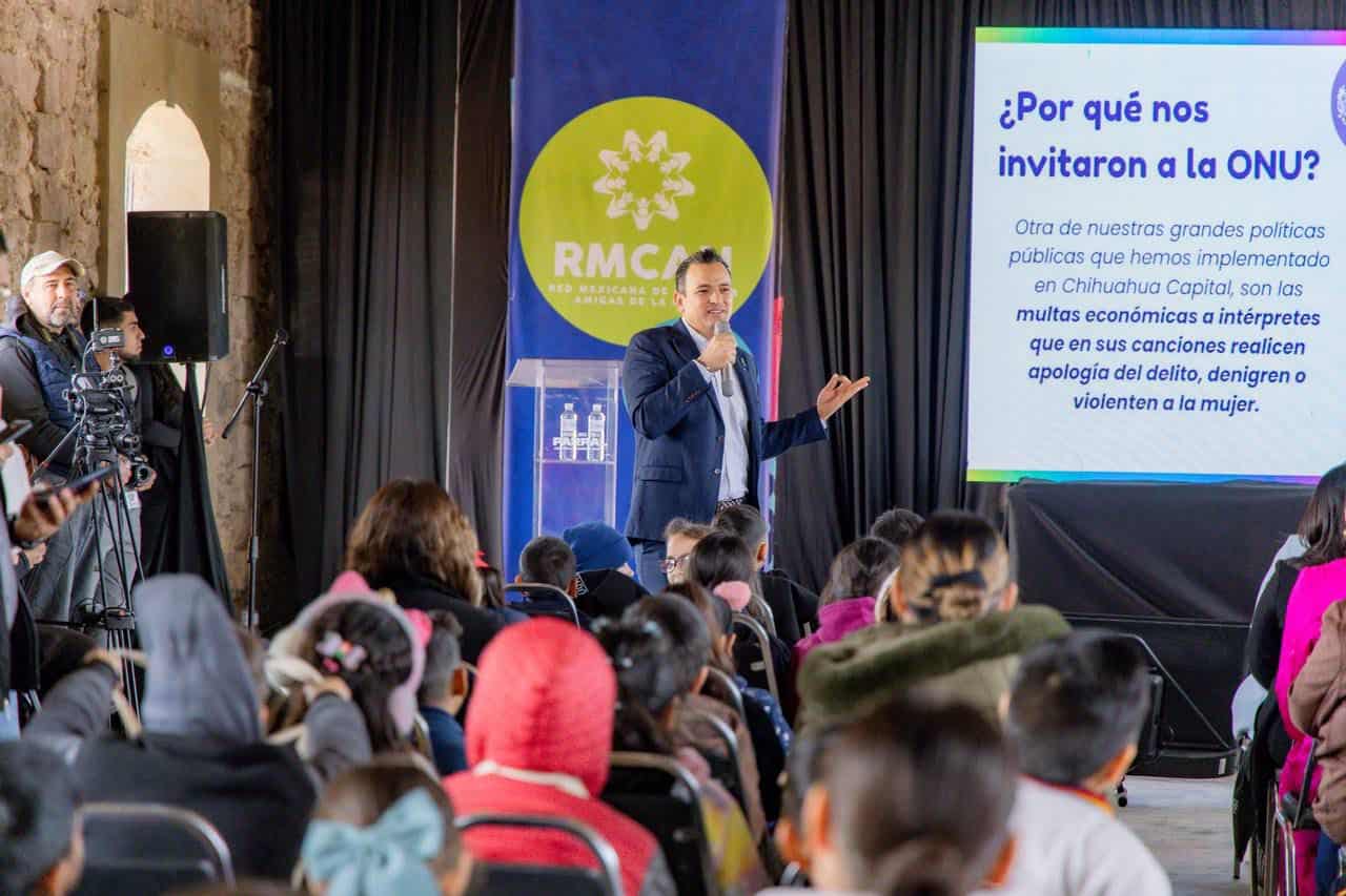 Durante su participación, el alcalde de Chihuahua presentó diversos programas del DIF Municipal, entre ellos “La Calle no es su Lugar”, mediante el cual se retira a niñas y niños que trabajan en la vía pública para integrarlos a espacios dignos y seguros. Gracias a este programa, de octubre a diciembre del año pasado se atendió a 189 niñas y 179 niños.