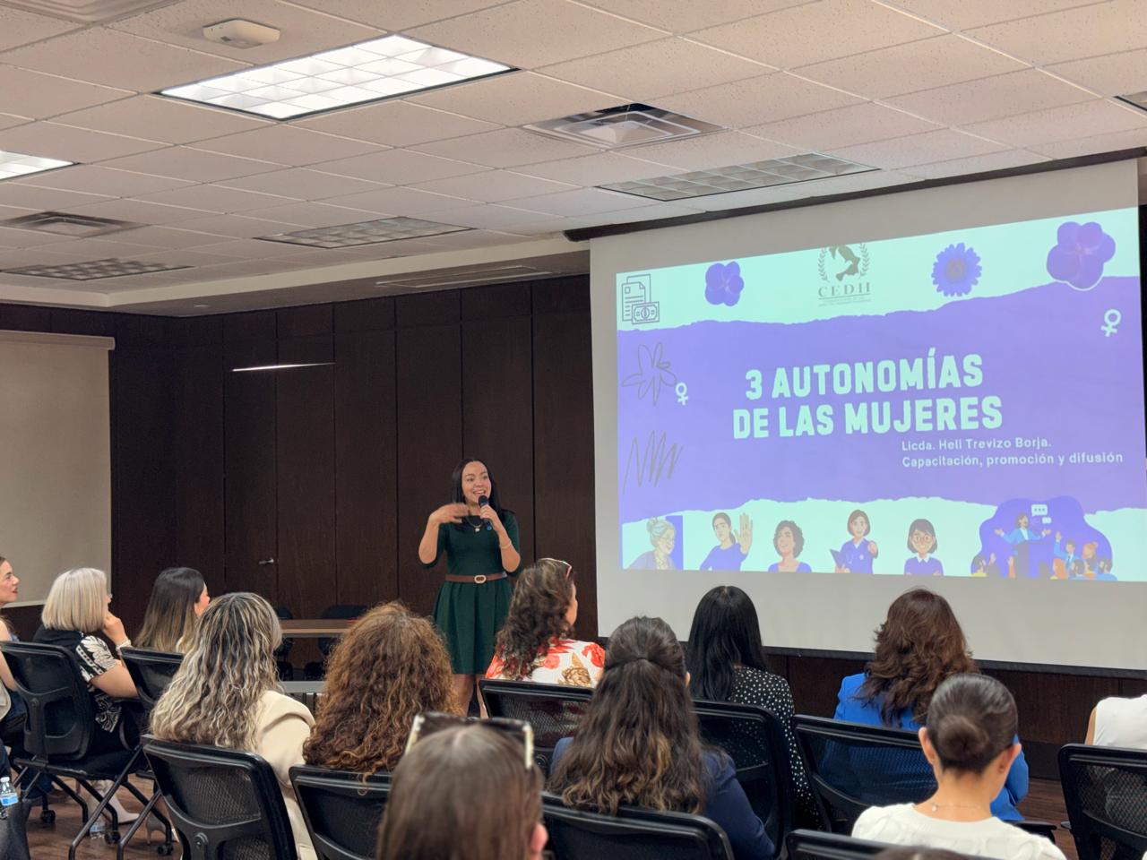 A través de la Secretaría del Ayuntamiento y en coordinación con la Comisión Estatal de los Derechos Humanos, se impartieron temas como “Las tres autonomías de las mujeres” y “Masculinidades libres de violencia”, dirigidos a personal de dependencias municipales y organismos descentralizados.
