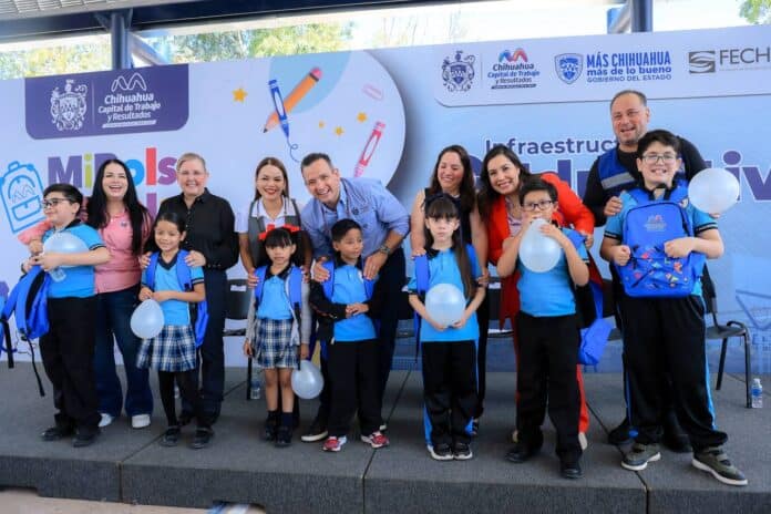 En su mensaje, el Alcalde, señaló que se les entregan dichos kits escolares a las 63 niñas y niños que estudian en esta primaria y en total, se entregarán 135 mil paquetes en esta edición 2025 de Mi Bolsa Escolar en todo Chihuahua Capital. Además, agregó que se inaugura un domo para que no sufran en este espacio por el sol o la lluvia.