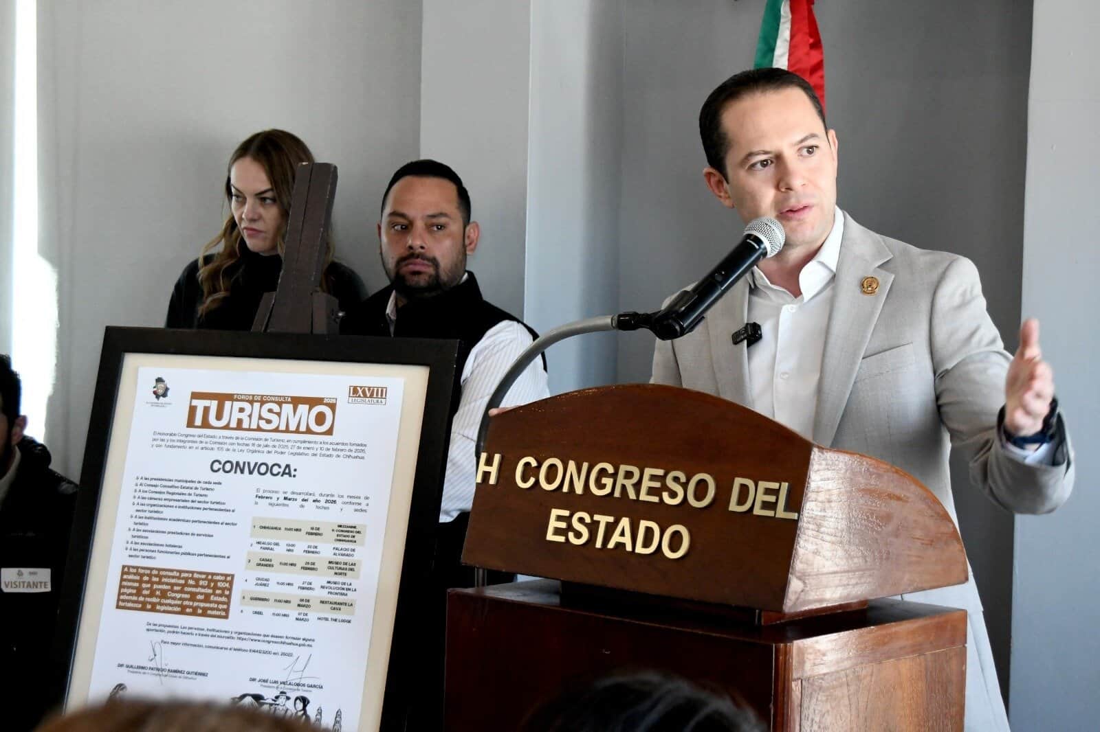 Al anuncio se dieron cita las diputadas Rosana Díaz (MORENA), Yesenia Reyes (PAN), y el diputado José Luis Villalobos (PRI), así como la presidenta de Cocentro, Claudia Portillo; el director del Instituto Municipal de Desarrollo Económico y Turismo, José Jordan; la titular del Cluster Minero, Cristina Muñoz; la representante del Hotel Misión Tarahumara, Ivonne Barriga; la directora de Chihuahua Espectacular, Gloria Ortiz; así como los diputados federales Alex Domínguez y Noel Chávez, Miguel Alonso Reyes.