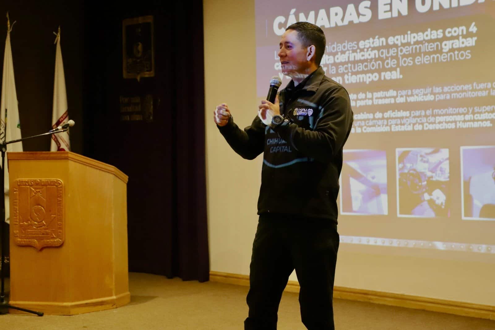 H. Ciudad de Chihuahua, Chih., La Dirección de Seguridad Pública Municipal (DSPM) arrancó el programa “Jornadas de Prevención Universitaria”, dirigido a estudiantes de la Universidad Autónoma de Chihuahua, con el objetivo de informar sobre la seguridad, prevenir delitos y fomentar la autoprotección.
