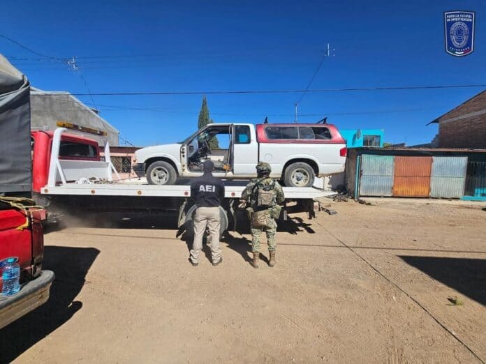 Elementos de la Agencia Estatal de Investigación, hallaron una pick up con reporte de robo, así como droga de la conocida como cristal, en una finca ubicada en la calle Revolución, entre la Martín Córdova y División del Norte, de la colonia Emiliano Zapata de la ciudad de Cuauhtémoc.