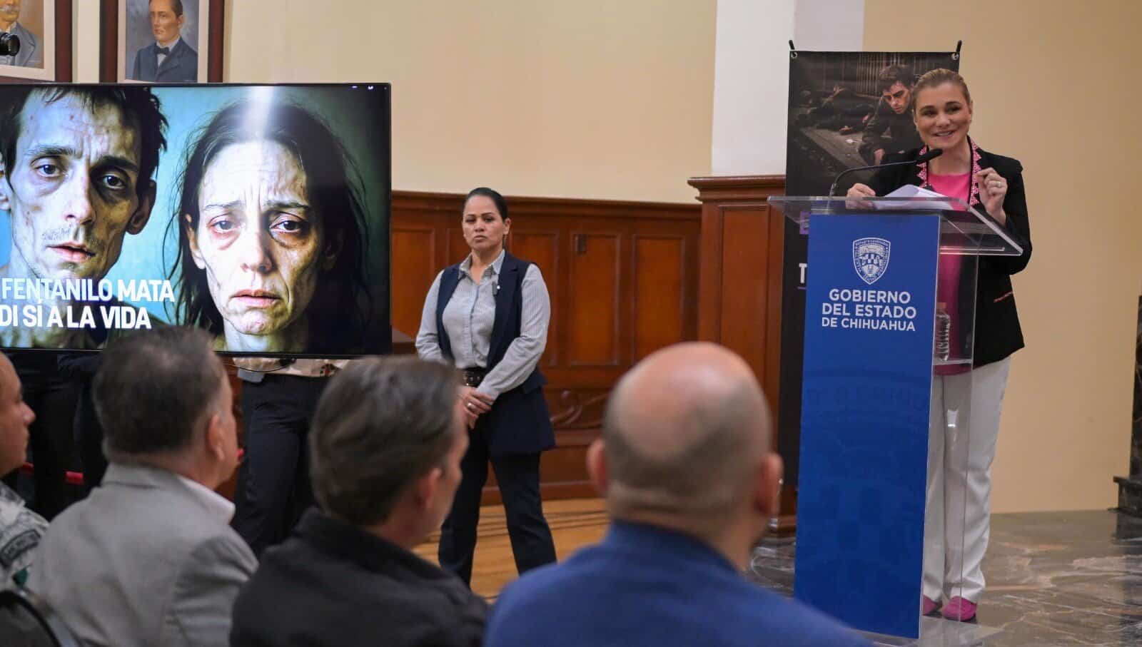 “No vamos a permitir que una crisis tan difícil como la que ha sido causada por el fentanilo en otras regiones, ataque a la sociedad chihuahuense. Protegeremos nuestras comunidades, especialmente a nuestros niños y jóvenes”, afirmó la mandataria estatal al exponer el proyecto.