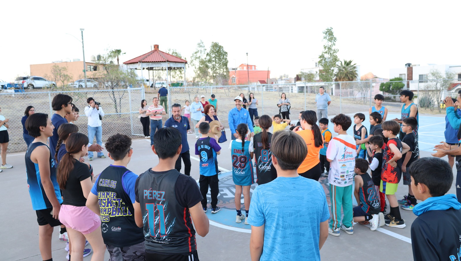 Por su parte, el entrenador y promotor de la cancha, Abraham Velázquez Pérez dio a conocer que este proyecto de la escuela de básquetbol, se inició en el 2021 con la iniciativa vecinal a fin de beneficiar a las infancias y juventudes, principalmente, pero que ha impactado a todo el entorno, por lo que agradeció la comunicación permanente que se tiene con el IMCFD para fortalecer estas acciones.