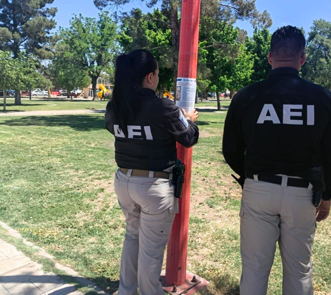 En seguimiento a los mecanismos de búsqueda y localización de personas reportadas ausentes y/o desaparecidas, efectivos de la Fiscalía de Distrito Zona Noroeste, llevaron a cabo el reparto y pega de pesquisas en parques, calles y lugares públicos, en la ciudad de Nuevo Casas Grandes.