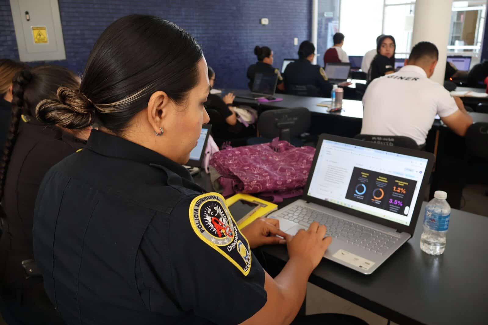 H. Ciudad de Chihuahua, Chih., Personal operativo y administrativo de la Dirección de Seguridad Pública Municipal (DSPM), recibió una capacitación especializada sobre el uso de la Inteligencia Artificial, con el objetivo de fortalecer las capacidades institucionales y aprovechar el potencial de las nuevas tecnologías y sus aplicaciones en el ámbito de la seguridad y trabajo administrativo.