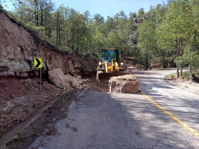 La Secretaría de Comunicaciones y Obras Públicas (SCOP) dio a conocer que fue restablecida la circulación en el tramo carretero San Pedro-Creel -Guachochi, afectado por un derrumbe derivado de las lluvias ocurridas este fin de semana en la Sierra Tarahumara.