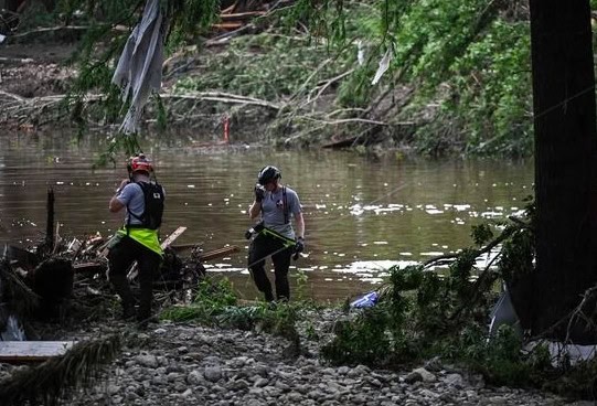Las inundaciones repentinas (entre las peores del país en décadas) golpearon campamentos y hogares junto al río antes del amanecer del viernes, arrastrando a personas dormidas de sus cabañas, tiendas de campaña y remolques, y llevándolas por kilómetros entre troncos de árboles y automóviles flotantes. Algunos sobrevivientes fueron encontrados aferrados a árboles.