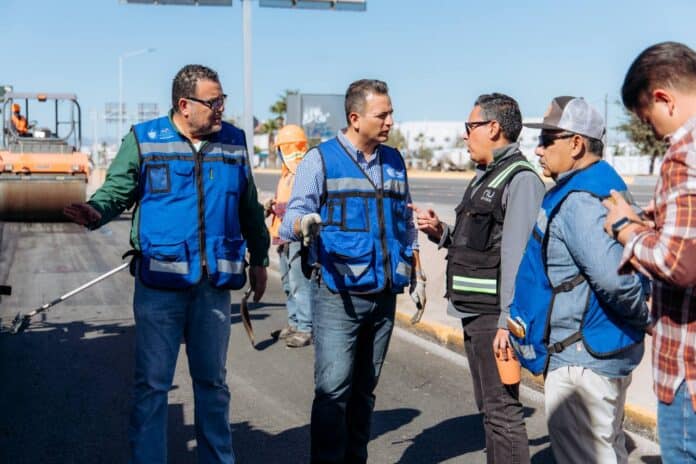 H. Ciudad de Chihuahua, Chih., El alcalde Marco Bonilla realizó un recorrido de supervisión en la lateral del boulevard Fuentes Mares en sentido de norte a sur, donde realizan trabajos de recarpeteo desde la calle José Velázquez hasta la Francisco Portillo, en beneficio de más de 100 conductores que a diario circulan por esta vía para llegar a sus hogares o centros de trabajo.
